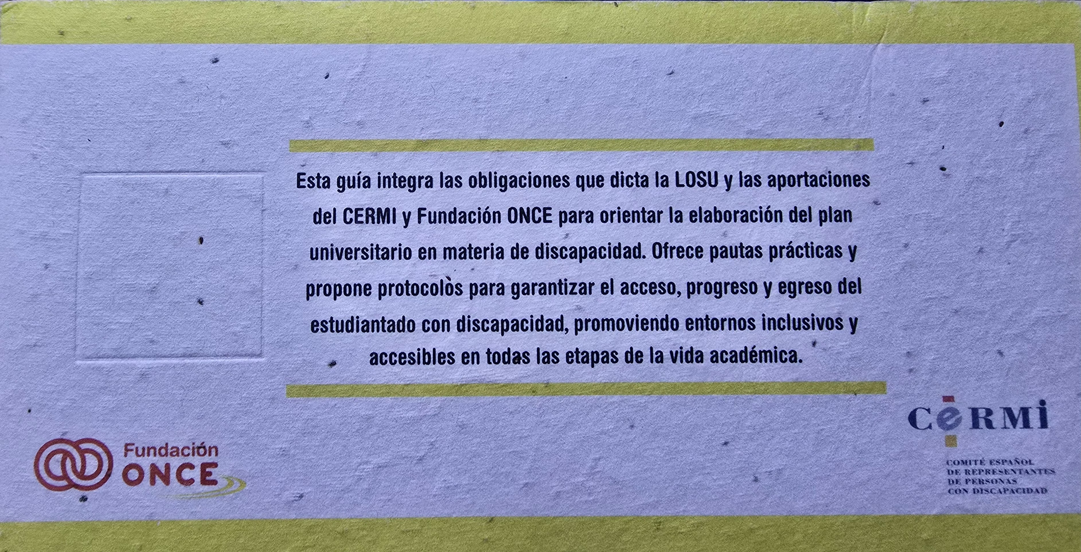 Esta guía integra las obligaciones que dicta la LOSU y las aportaciones del CERMI y Fundación ONCE para orientar la elaboración del plan universitario en materia de discapacidad.